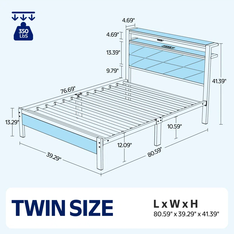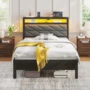 - 【Storage Headboard with Charging Station】The storage bed headboard includes 2 USB ports and 1 Type-C port, making it convenient to charge mobile phones, tablets and other electronic devices. Additionally, the headboard features 2-tier storage shelves, perfect for storing books, decorations, alarms and other personal items.